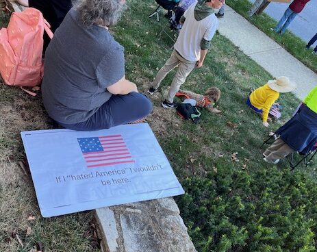 Republican politicians had sought to portray the demonstrators in advance as people who “hate America.” But dozens of the hundreds of homemade protest placards pushed back on those attacks with signs like the one that said, “We the People Love America.”