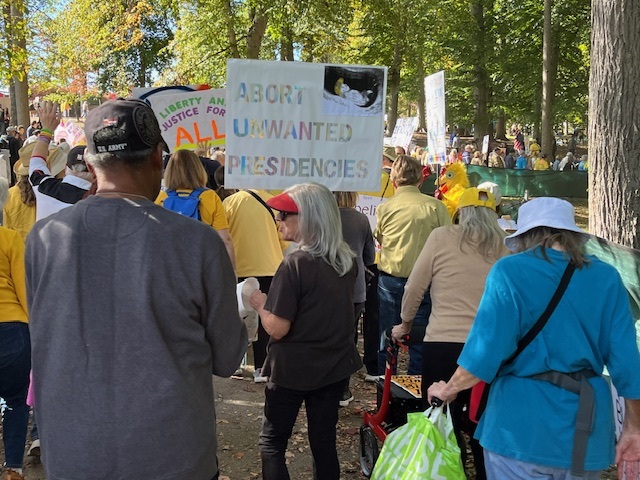 The White House and Trump supporters also sought to characterize the rallies as potentially violent paid protests by the radical left. But like much of Howard County, the peaceful Columbia protesters skewed markedly white, older suburban professionals, including the retired with walkers and canes, though there was the town’s typical wide range of ethnic and racial diversity and plenty of parents holding hands with young kids and with little ones in strollers.
