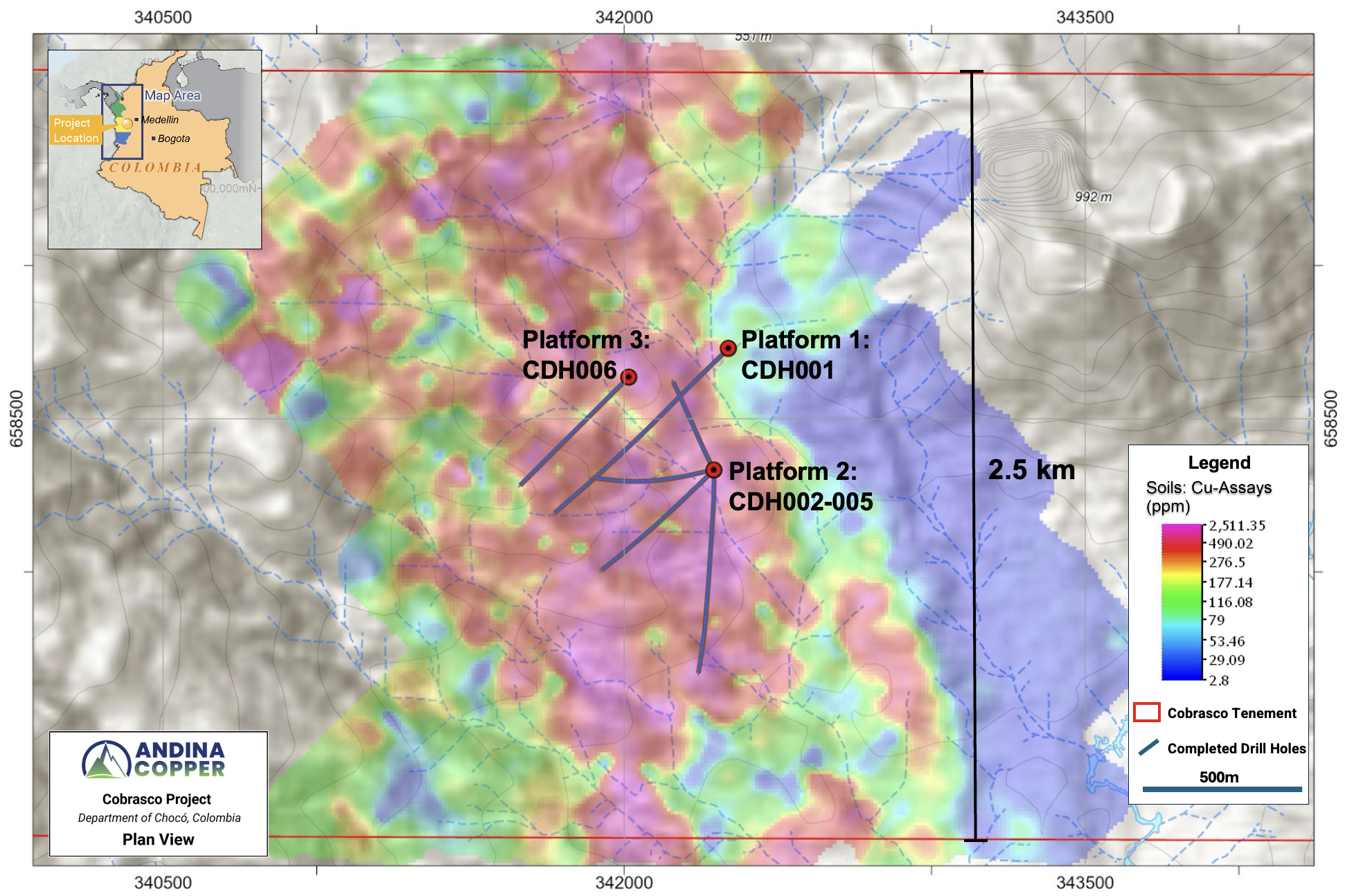 “Following recent results from CDH003, the wide intercepts of high-grade copper mineralization reported in CDH004 further validate the size, scale and grade of the Cobrasco system. We see the potential for a globally significant deposit(s) at Cobrasco, and mobilization of a second drill rig to expedite rapid exploration and evaluation is planned. Ongoing step-out drilling will now seek to systematically expand the footprint of the system, add volume to the copper grade shells and define the lateral extents of the system."